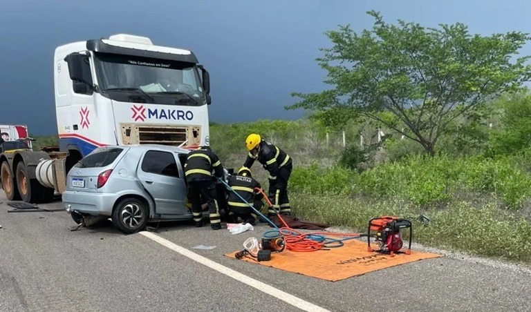 Uma grave colisão entre um caminhão e um carro na BR-110, nas proximidades de Upanema, interior do Rio Grande do Norte, deixou três pessoas mortas e uma ferida na tarde desta segunda-feira (23).