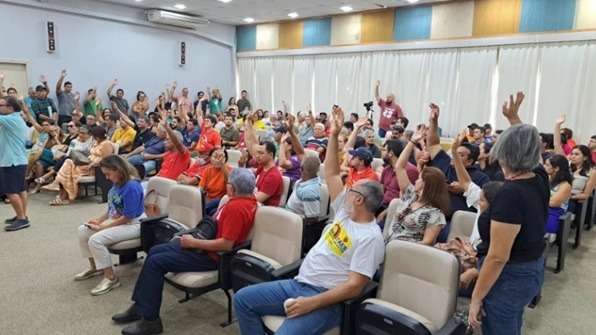 Os servidores técnico-administrativos da UFRN anunciaram nesta segunda-feira (23), em assembleia realizada no auditório da Biblioteca Central Zila Mamede (BCZM), a instalação do comando local de greve e os próximos passos do movimento. A paralisação ocorre após o descumprimento de 17 pontos do acordo firmado em 2024 com o governo federal.