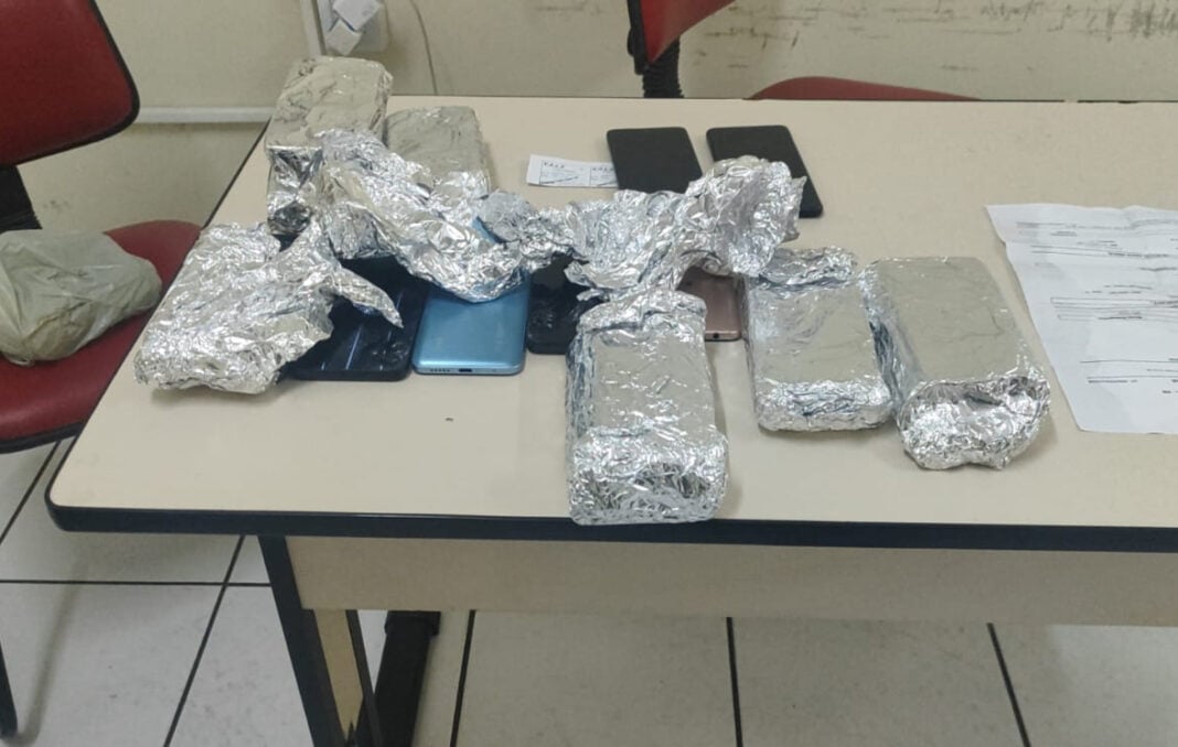 A mulher foi conduzida ao posto policial e, durante revista em sua bolsa, os militares encontraram diversos celulares embalados em papel alumínio. Ao todo, foram apreendidos 43 aparelhos de diferentes marcas e modelos.