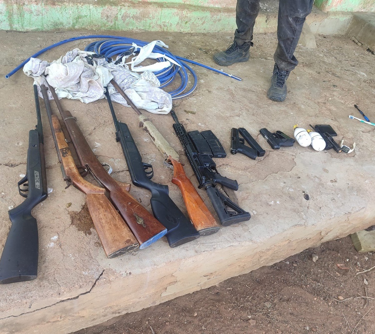 Durante a ação, os agentes apreenderam um vasto arsenal, composto por armas de fogo, grande quantidade de munições e coletes balísticos. Entre o material recolhido, está um fuzil de uso restrito, o que reforça a gravidade da atuação criminosa do grupo.