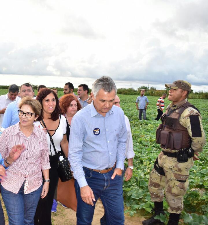 General Girão e Tereza Cristina visitando plantio de melão em Mossoró