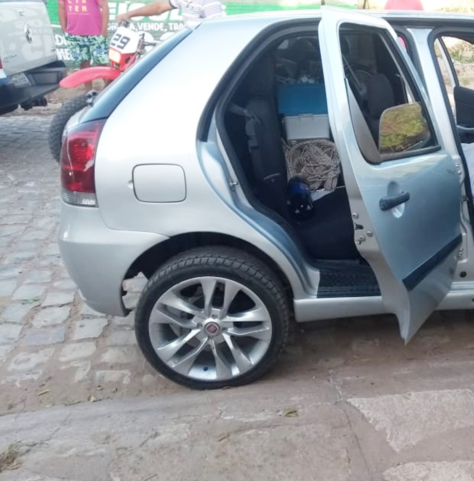Trio atacado estava em um Palio, a caminho da Praia das Emanuelas, quando foi trancado por outro veículo — Foto: PM/Divulgação